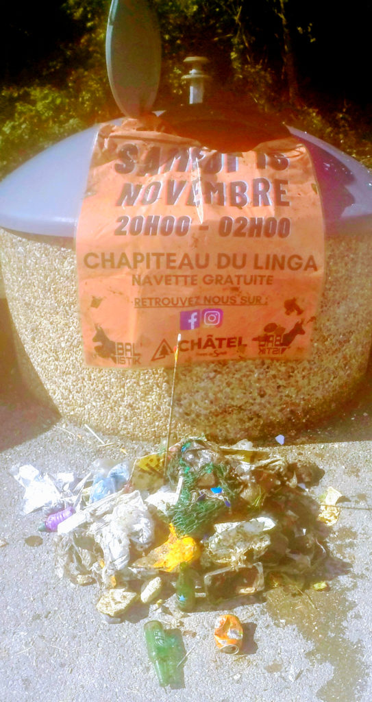 Mardi j’ai continué ma croisade dans la Vallée de la Manche, du téléphérique de Nyon jusqu’au Pont des Allamands. Après avoir trouvé la veille un slip , cette fois ce sont un t-shirt et un pantalon posés ensembles sur la berge. Divers déchets, d’un enjoliveur à une luge en plastique, en passant par du polystyrène et du tissu, ont fait grimper l’aiguille de la balance à 6 kg. Avant de retourner à ma voiture , j’ai fait un petit détour à la cascade de Nyon , histoire de mettre un peu de poésie dans ma quête .