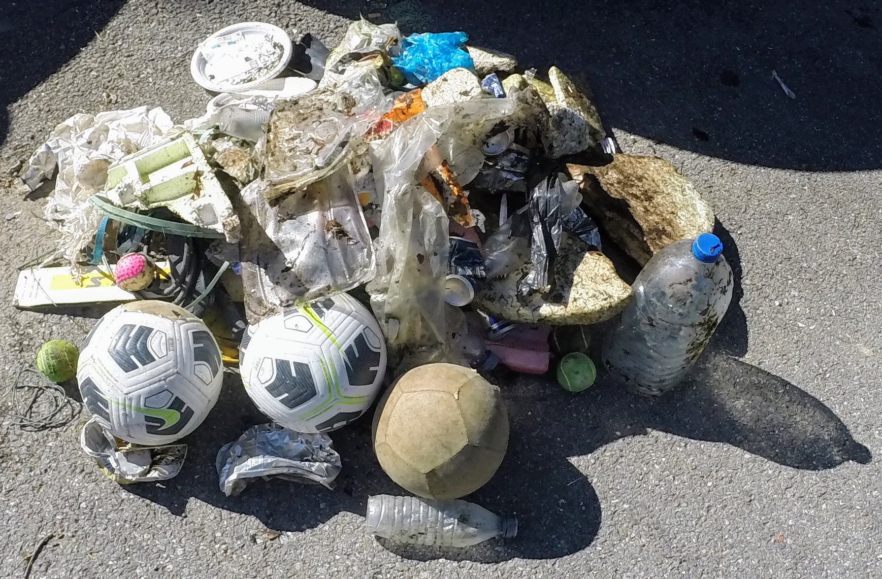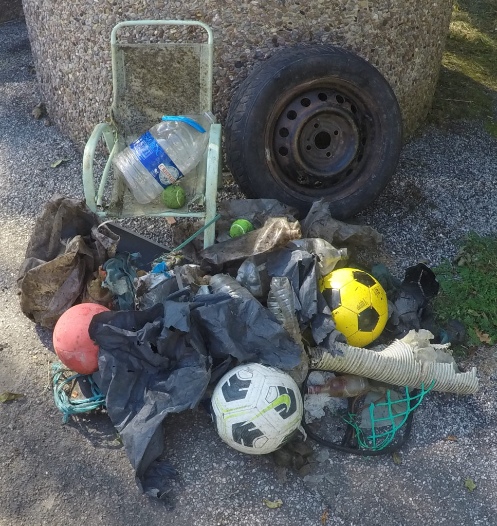 Chaise enfant.Ballon de foot.Bouteille…Gros plastique.Jet de pneu.Pneu vidange.