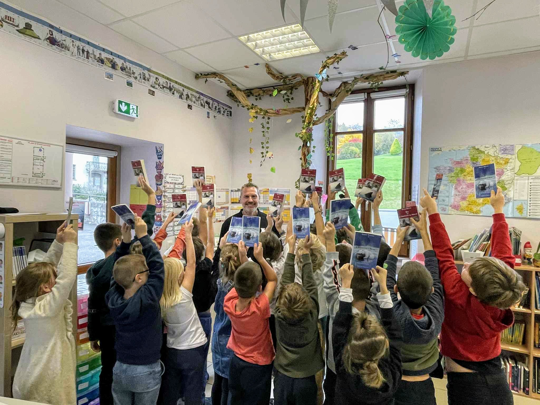 , en offrant à chaque enfant un de mes romans, “l’Esprit de l’Ours” et “Roy et le sortilège de Sorcar” édité par mon ami et regretté Bernard Paccot